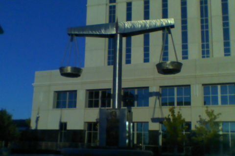 Water pours from one side of the beam into the large pan, the beam moves and the water pours from the other side. On the base are 30 quotes in different languages and scripts on the subject of justice and the law. The translations for these quotes appear on granite blocks inlaid into the plaza. Each quote has a visual cue to help identify it’s place of origin.